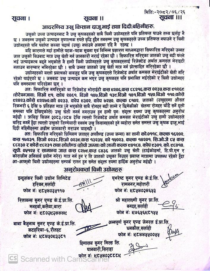 जानकारी गराईएको बारे सूचना