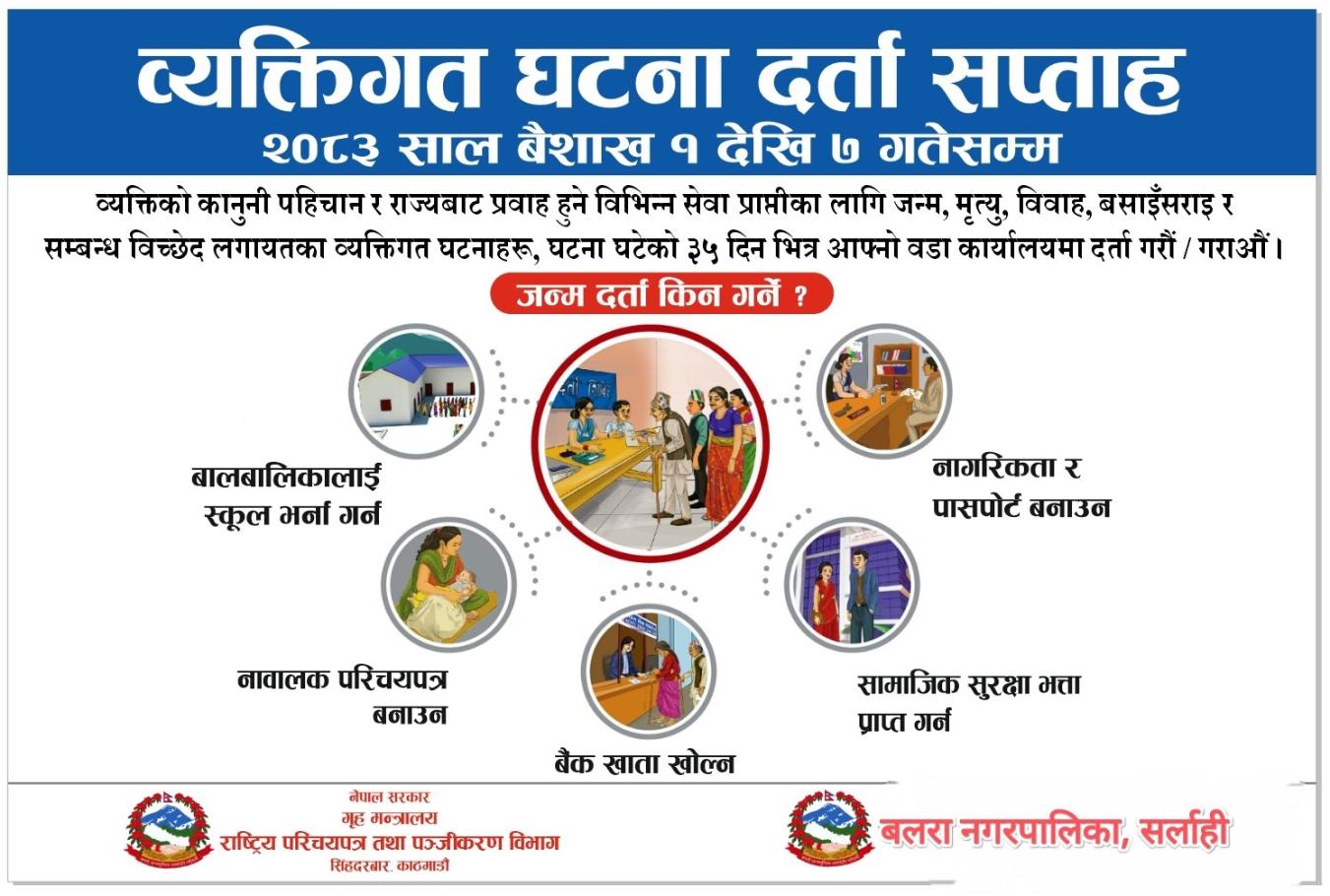 » व्यक्तिगत घटना दर्ता सप्ताह २०८३ साल बैशाख १ देखि ७ गतेसम्म
