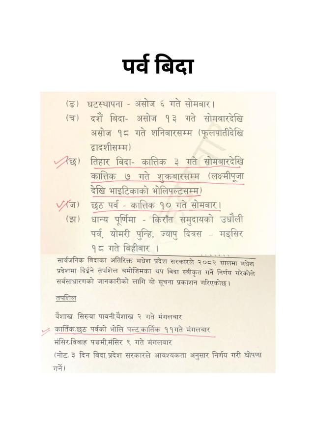 पर्व बिदा सम्बन्धित सूचना