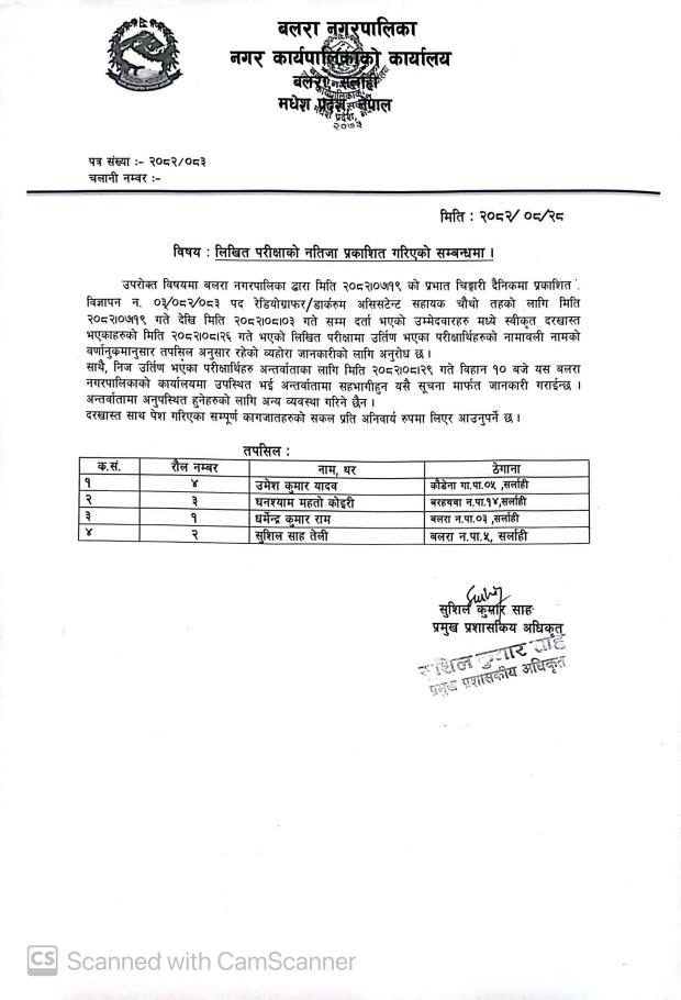 रेडियोग्राफर/डार्करुम असिसटेन्ट लिखित परीक्षाको नतिजा प्रकाशित गरिएको सम्बन्धमा