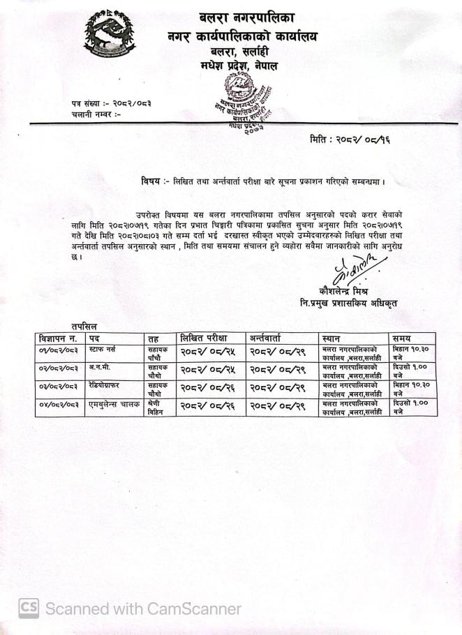 लिखित तथा अन्तरवार्ता परीक्षा बारे सूचना