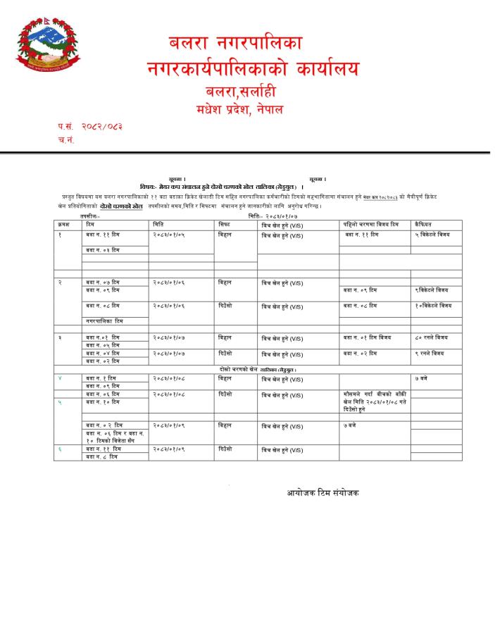 मेयर कप संचालन हुने दोस्रो चरणको खेल तालिका (सेडुयुत) ।